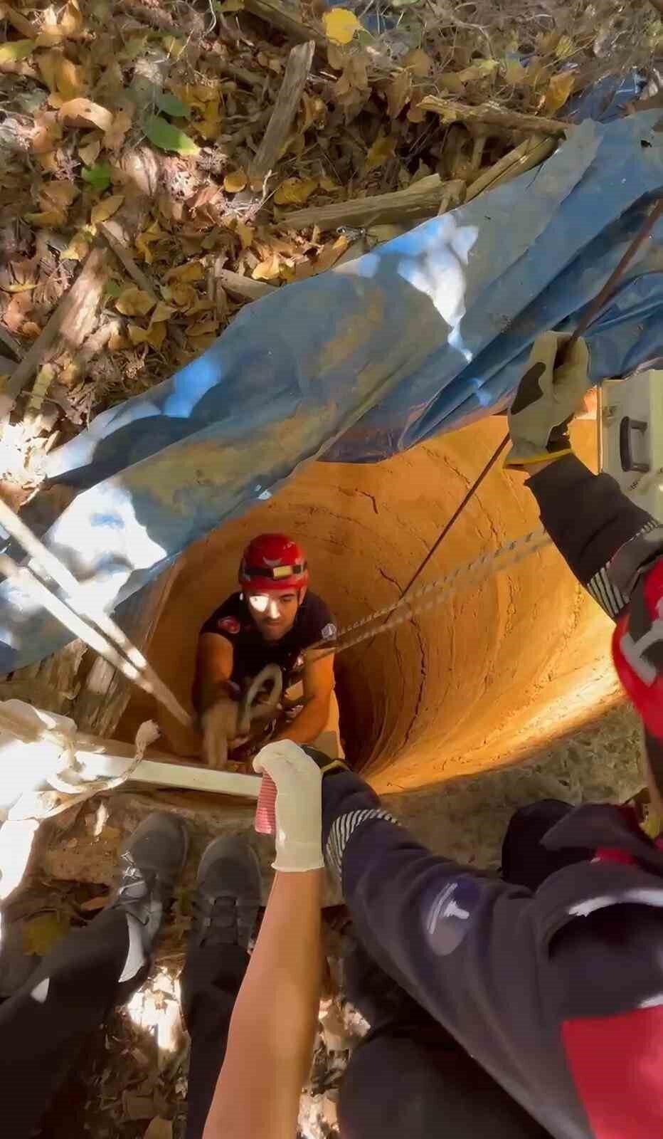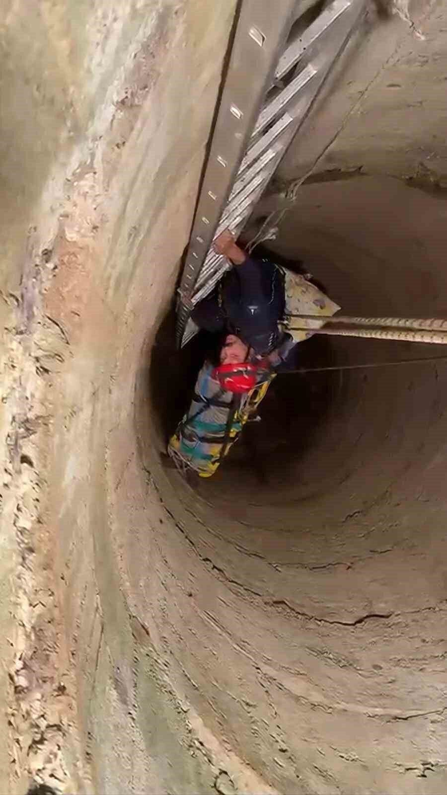 12 metrelik kuyuya düşen 80 yaşındaki Halil Amca, itfaiyenin müdahalesiyle kurtarıldı