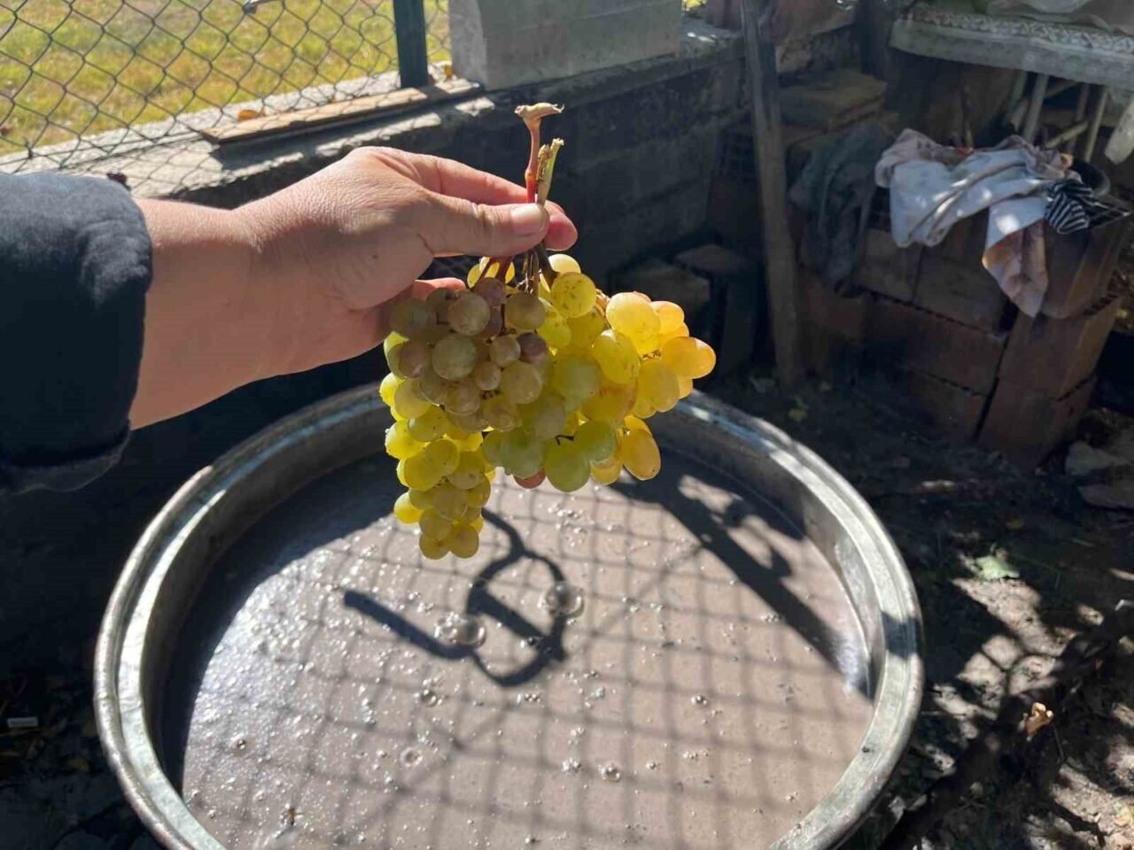 Yerli üzüm çeşitlerine de dikkat çeken Gümüş, “Özellikle yerli üzümümüz dimlit ve ak üzüm. Ak üzüm asmalarda olur, ince kabukludur ve sıkım için çok uygundur, bol suludur. Dimlit dediğimiz siyah üzümlerimiz de bağlarımızda olur. Asıl yerli pekmez üzümlerimiz bunlardır. Bal gibi tatlı olur. Bunlara torba geçirerek şubat ayına kadar da saklama imkunımız olur. Yağmur, çamur dinlemez, torbanın içinde korunur, yemeğe de uygundur” diye konuştu.