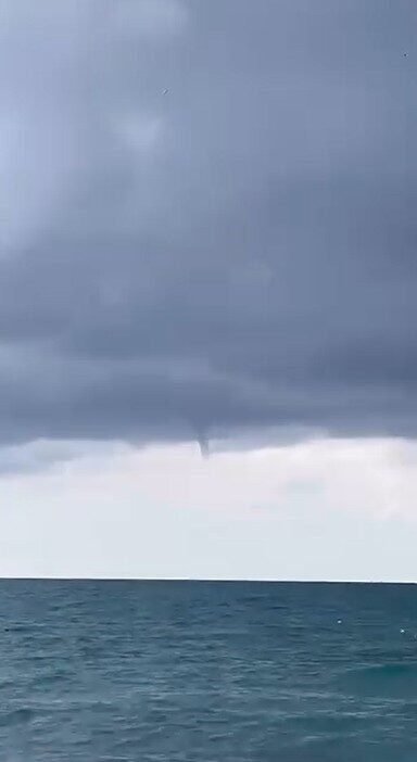 Alanya’ya sağlı Konaklı Mahallesinde sabah saatlerinde deniz üzerinde oluşup karaya ulaşmadan kısa süre sonra etkisini kaybeden hortum vatandaş tarafından cep telefonu kamerasıyla görüntülendi.