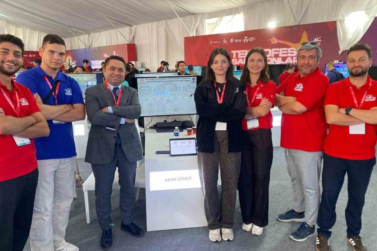 Alanya Alaaddin Keykubat Üniversitesi (ALKÜ) Rafet Kayış Mühendislik Fakültesi Endüstri Mühendisliği Bölümü öğrencilerinden Eray Baysal ve Aleyna Kenar tarafından yapılan “GIS Tabanlı Çok Kriterli Karar Verme Yöntemleri Uygulaması ile Antalya İli Elektrikli Araç Şarj İstasyonu Yer Seçimi Çalışması” başlıklı proje, 2025 TEKNOFEST 2242 Üniversite Öğrencileri Araştırması Projesi kapsamında Enerji ve Çevre kategorisinde birinci olmuştu. “Akım İzinde” takımının öğrencileri, birincilik ödülünü TEKNOFEST İstanbul Ödül Töreni’nde Cumhurbaşkanı Recep Tayyip Erdoğan’ın elinden aldılar. Yarışmaya ALKÜ Rektörü Prof. Dr. Kenan Ahmet Türkdoğan, Proje Danışmanı akademisyenler Dr. Öğr. Üyesi Eren Kamber ve Öğr. Gör. Ufuk Aydoğmuş, şampiyonlar Eray Baysal ve Aleyna Kenar katıldı.
