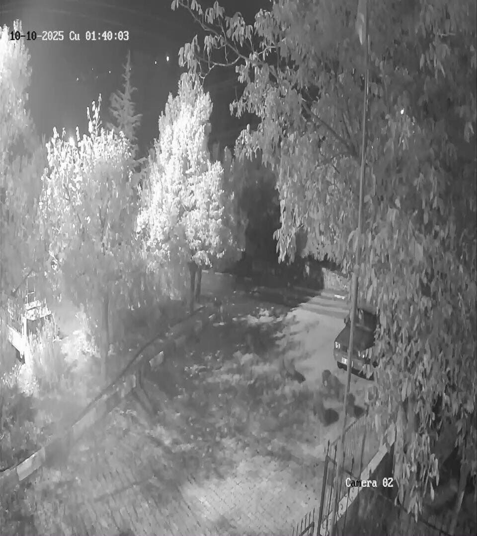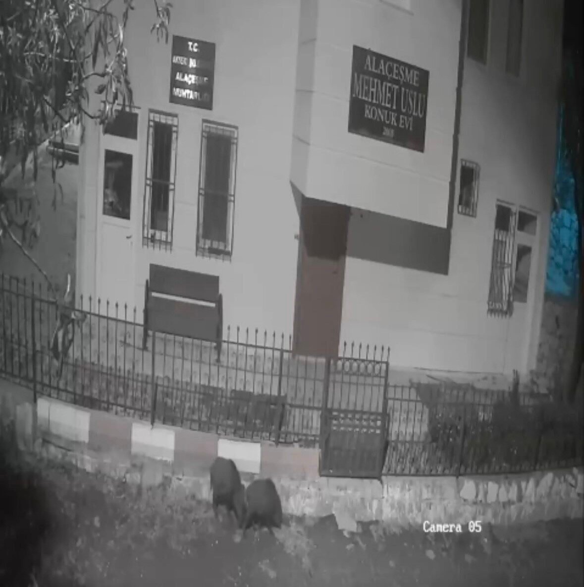 Gece saat 01.30 sıralarında mahalle arasında dolaşan domuz sürüsü, güvenlik kameralarına yansıdı. Görüntülerde domuzların uzun süre mahalle içinde dolaşıp yiyecek aradıkları, daha sonra ormanlık alana doğru uzaklaştıkları görüldü.