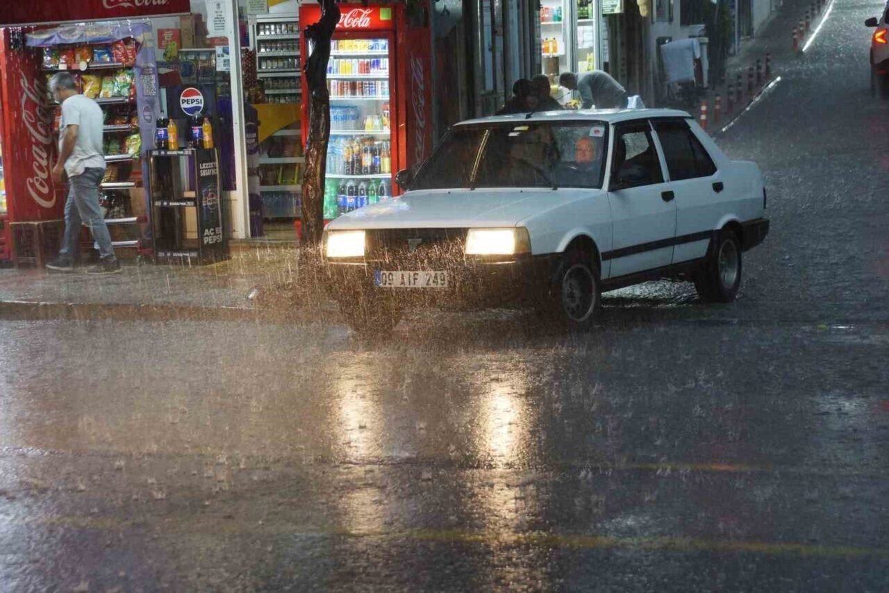 Meteoroloji’nin sağanak yağış uyarısının ardından Aydın’da akşam saatlerinde gök gürültülü sağanak yağış etkili oldu. Bir anda bastıran yağış sonrasında yollar dereye dönerken, araç sürücüleri ve vatandaşlar zor anlar yaşadı. Zaman zaman trafikte aksamalar olurken, yağmura yakalanan vatandaşlar ise sığınacak yer aradı. Yağış nedeniyle bazı yollarda su birikintileri oluşurken, araç trafiği sağlanamadı. Yağışların gece saatlerine kadar aralıklarla devam etmesi bekleniyor.