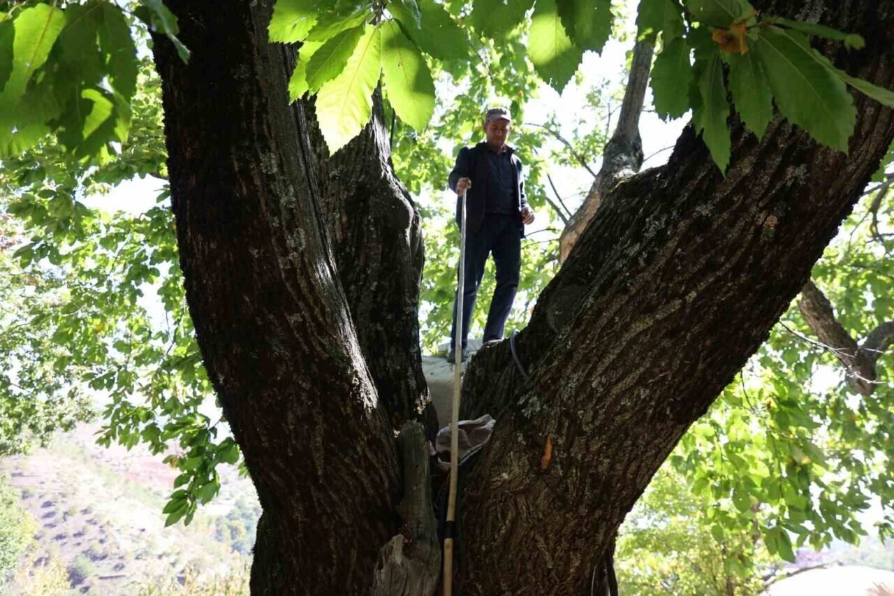 Yüksek ağaçlara adeta bir komando gibi tırmanan kestane çırpıcılarından Galip Tosun ise özellikle ağaçlardan kaymamak için lastik ayakkabı kullandıklarını ifade ederek “Zor bir iş tabi ama Allah bereket versin yavaş yavaş sezonun sonuna geliyoruz. Allah tekrarını göstersin, hatasız kazasız yedirmeyi nasip etsin Allah” diyerek bu yıl da hasadın sağ salim tamamlandığını söyledi.