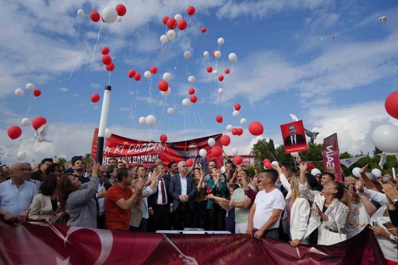 CHP Antalya İl Başkanlığı öncülüğünde gerçekleştirilen etkinlikte, partililer Böcek’in fotoğrafının yer aldığı pastayı kesti. Etkinlikte ellerinde kırmızı ve beyaz balonlar taşıyan partililer, “Başkanımıza özgürlük” sloganları attı. Pastanın kesilmesinin ardından gökyüzüne beyaz güvercinler ve balonlar bırakıldı.