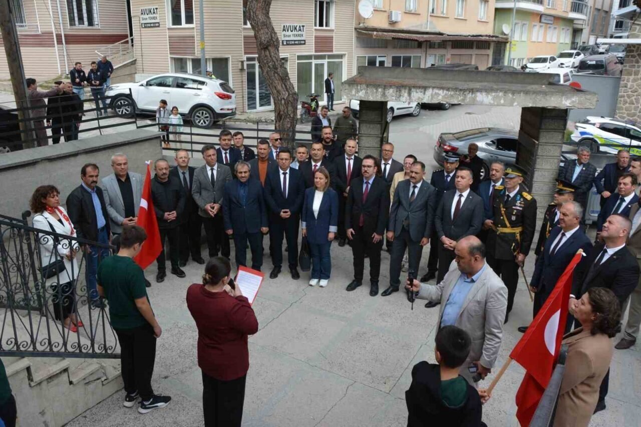 Cumhuriyet’in 102. yılı kutlamaları kapsamında Demirci Kaymakamı Fatih Bayram, Belediye Başkanı Erkan Kara, Garnizon Komutanı Mly. Binbaşı Hüseyin Cihan Korkmaz, Cumhuriyet Başsavcısı Emre Aytaç, ilçe protokolü ve öğrenciler aynı yerde buluşarak 97 yıl önceki fotoğrafı birebir canlandırdı.