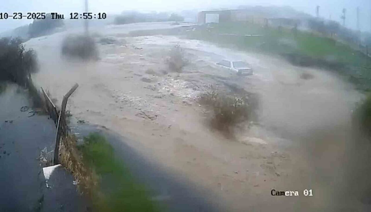 İZMİR’İN FOÇA İLÇESİNDE, SELDE KAYBOLAN 70 YAŞINDAKİ BÜLENT KAPTANOĞLU’NUN ARACININ SELE KAPILDIĞI ANLAR GÜVENLİK KAMERALARINA YANSIDI