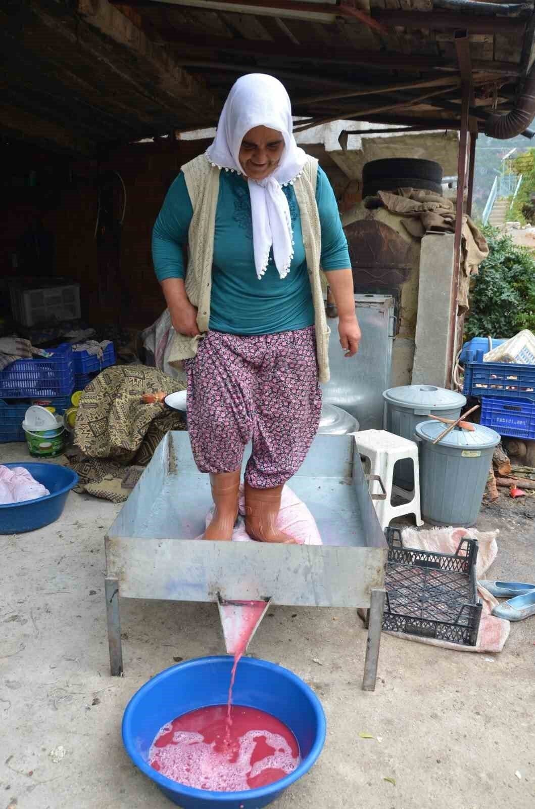 Nar ekşisi yapımının zahmetli olduğunu belirten üreticilerden Akseki’nin Alaçeşme Mahallesi’nde yaşayan 92 yaşındaki Rahime Uslu, ilçede yaşayan kadınların binbir emekle hazırladıkları nar ekşilerinin yemeklerin vazgeçilmezi olduğunu söyledi. Uslu, “Komşularımla birlikte narları ağaçlardan topluyoruz. Narları kırıp tanelerini leğenlerde biriktiriyoruz, sonra çuvallara koyup kendi yaptığımız şırahanelerde eziyoruz. Ertesi gün sabah erken saatlerde odun ateşinde 5-6 saat kaynatıyoruz. Kıvamına gelmeden ocaktan indirmeyiz. Hiçbir katkı maddesi koymuyoruz, tamamen doğal yapıyoruz. Çok zahmetli ama bir o kadar da lezzetli oluyor” dedi.