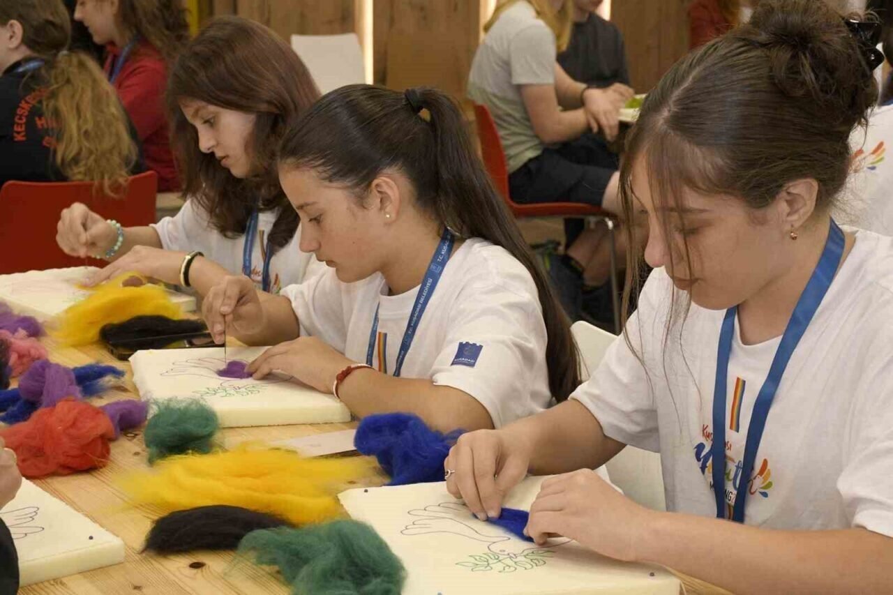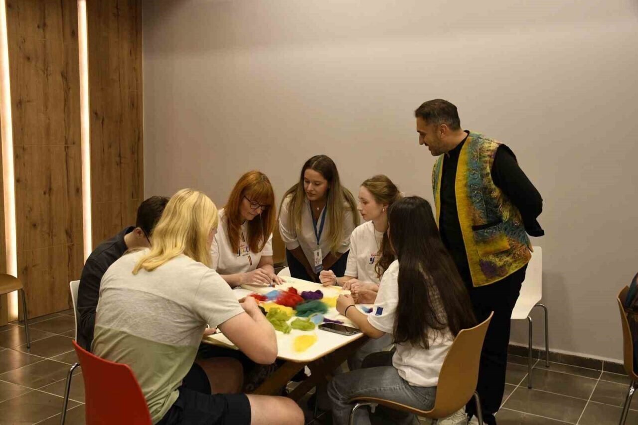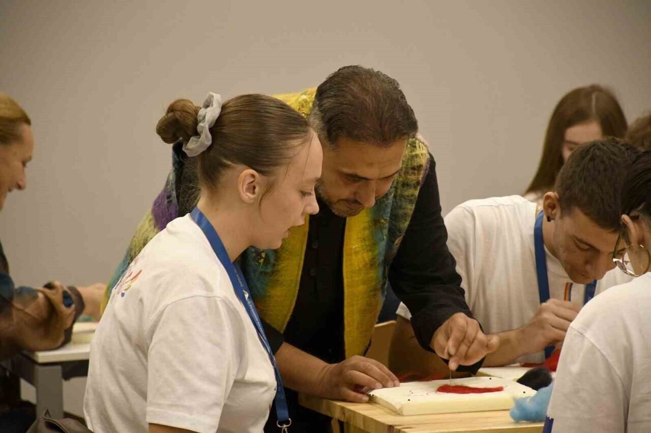 Kuşadası Belediyesi’nin ev sahipliğinde başlayan gençlik toplantısı 2’inci gününde keçe atölyesi ile devam etti. Öğrenciler atölyede birbirinden renkli çalışmalar yaparak eğlendi.