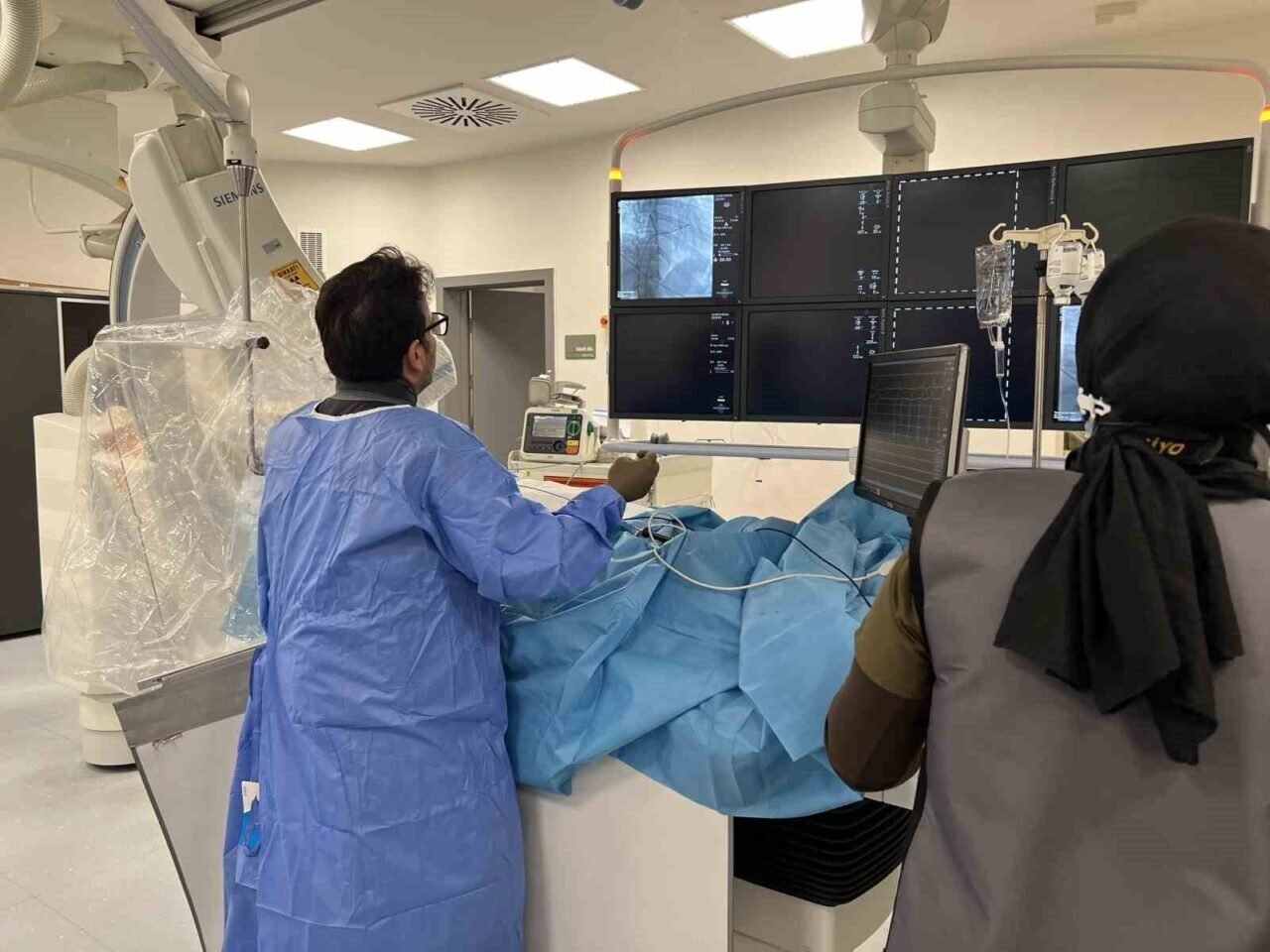 Doç. Dr. İbrahim Halil Özdemir, “Geçen hafta ilk defa iki hastamıza Supraventriküler taşikardi tanısı yani bir ritim bozukluğu tanısı koyduk. Bu hastalarımızı EPS yöntemiyle ritim bozukluğu odaklarını bulduk. Ablasyon tedavisiyle de yakma işlemiyle tedavilerini tamamladık. Çok şükür hastalarımızı sağlıklı bir şekilde taburcu ettik. 2026 yılında Kriyoablasyon ve üç boyutlu cihazla ablasyon gibi cihazlarla farklı tedavi yöntemlerini uygulamayı planlıyoruz. 6 ay boyunca Koşuyolu Yüksek İhtisas Hastanesi’nde aritmi eğitimi almamı sağlayan başta Doktor Abdülkadir Uslu olmak üzere bu süre boyunca bana eğitimde destek veren Dr. Mehmet Çelik, Dr. Serdar Demir, Dr. Kamil Gürçen, Dr. Gültekin Gülhandemir hocalarıma teşekkür ederim. Bunun yanında ilk aldığım vakalarda yanımda bilgisiyle destek veren Ege Üniversitesi Kardiyoloji’den Dr. Bekir Serhat Yıldız’a ve hastanemiz başhekimi Dr. Serkan Saka’ya malzeme temini konusunda her türlü desteği verdiği için teşekkür ederim” dedi.
