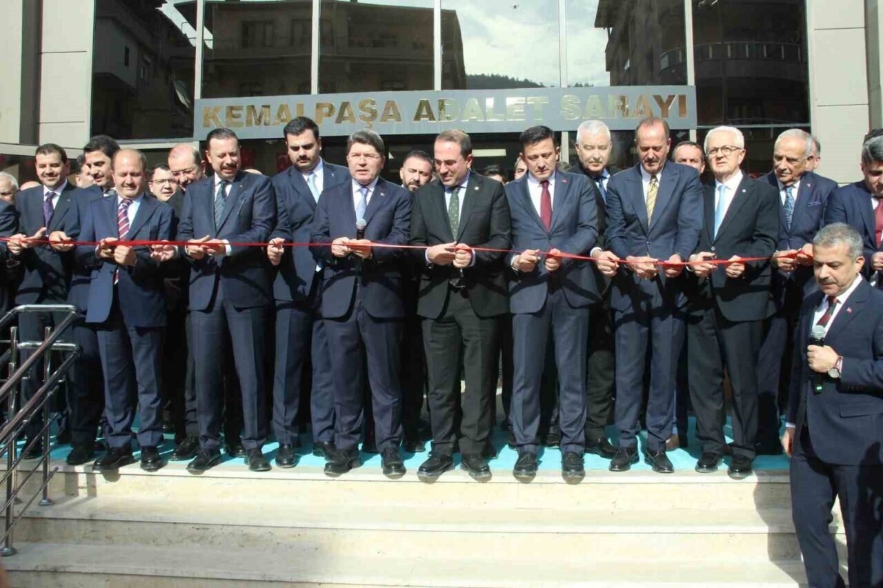 Adalet Bakanı Yılmaz Tunç, İzmir programı kapsamında Kemalpaşa Adalet Sarayı açılış ve Aliağa Adalet Sarayı temel atma törenine katıldı. Kemalpaşa’da düzenlenen törene Bakan Tunç’un yanı sıra AK Parti Genel Sekreteri ve İzmir Milletvekili Eyyüp Kadir İnan, AK Parti İzmir Milletvekilleri Mahmut Atilla Kaya, Yaşar Kırkpınar AK Parti MKYK Üyesi Hamza Dağ, MHP İzmir Milletvekili Tamer Osmanağaoğlu, İzmir Cumhuriyet Başsavcısı Ali Yeldan ile protokol ve partililer katıldı. Törende açıklamalarda bulunan Bakan Tunç, “Bugün sizlerle beraber Kemalpaşa Adalet binamızın açılışını, inşallah gerçekleştireceğiz. İzmir’e farklı vesilelerle defalarca geldik; bakanlığım süresi içerisinde. İzmir, Ege’nin incisi. İzmir, yaklaşık 30 civarında ilçesi olan ve Türkiye’nin üçüncü büyük şehri; önemli bir şehir. Ege’nin incisi; her bir yanı tarih kokan, medeniyetlere beşiklik yapan, ülkemizin en değerli nadide köşelerinden bir yer. O nedenle İzmir’e ne yapsak azdır. Yapmaya çalışıyoruz. 23 yıllık iktidarımızda Cumhurbaşkanımız Sayın Recep Tayyip Erdoğan, İzmir’e çok büyük değer verdi. Milletvekillerimizle beraber, genel başkan yardımcılarımızla beraber şu anda da hala devam ediyoruz. Yollarıyla, otobanlarıyla, limanlarıyla, şehir hastaneleriyle, adliye binalarıyla her şeyiyle, altyapısıyla, üst yapısıyla İzmir’e önem vermeye devam ediyoruz” İfadelerini kullandı.