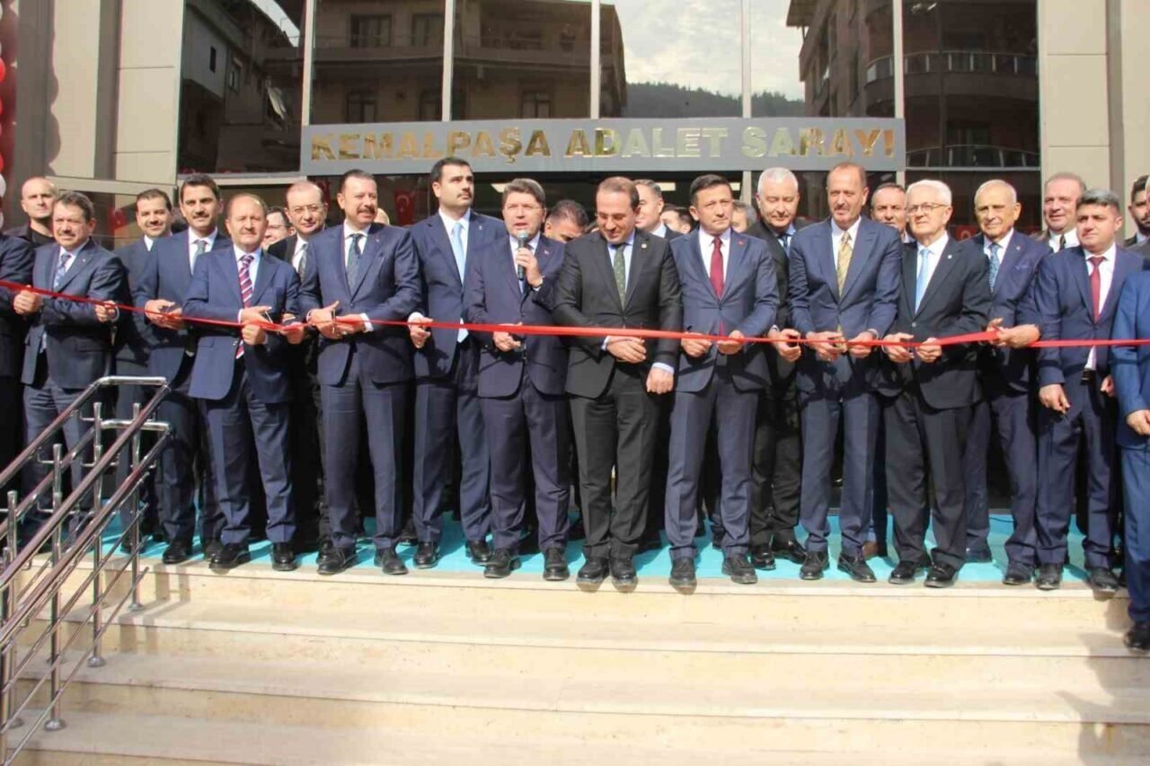 Törende konuşan AK Parti Genel Sekreteri ve İzmir Milletvekili Eyyüp Kadir İnan, adalet sarayının hayırlı olması temennisinde bulunarak, “Kemalpaşa’mıza ve yargı camiamıza imza niteliğinde bir yatırımı kazandırmanın mutluluğunu yaşıyoruz. 1.5 sene gibi kısa bir dönemde, tasarruf tedbirlerinin hakim olduğu bir dönemde Adalet Bakanlığımız, bilgemize bu hizmeti kazandırdı. Tüm hemşehrilerimiz adına sayın bakanımıza, ekibine emeği olan herkese teşekkür ediyorum. Tüm bakanlıklarımız kollarını sıvadılar, İzmir’imizin sorunları için şehrimize çok yoğun destek veriyorlar. Fakat biz bu yapıları kazandırırken, 1.5 sene gibi kısa bir sürede bu yapıyı kazandırırken, şehir hastanelerini kazandırırken, statlarımızı, sağlık komplekslerimizi kazandırırken maalesef yerel yönetimden aynı hızı göremiyoruz. Biz bu kadar büyük gayret ve destek ortaya koyarken aksine maruz kaldığımız eleştirileri de kabul etmiyoruz. Büyükşehir Belediye Başkanı Cemil Tugay, ‘İzmir’e ayırımcılık yapıyorlar, İzmir’e farklı bakıyorlar’ diyor. Biz de buradan bu haksız eleştirilere işte Kemalpaşa’da açtığımız muhteşem yeni bir adalet sarayını İzmir’e armağan ederek cevabımızı vermiş oluyoruz. Başta sayın Cumhurbaşkanımız Recep Tayyip Erdoğan olmak üzere bakanımıza, İzmir’in yargı camiamızın ihtiyaçları doğrultusunda bizi yalnız bırakmayan tüm bakan yardımcılarımıza teşekkür ederiz. Bayraklı’da büyük bir lojman ihtiyacı vardı. Yine büyük bir lojman satın alımını hızlıca gerçekleştirdik. Diğer konularda da Adalet Bakanlığı’mız bizlere çok büyük destekler veriyor. Biz de bu destekleri vatandaşlarımızla paylaşmakta kararlıyız” dedi.