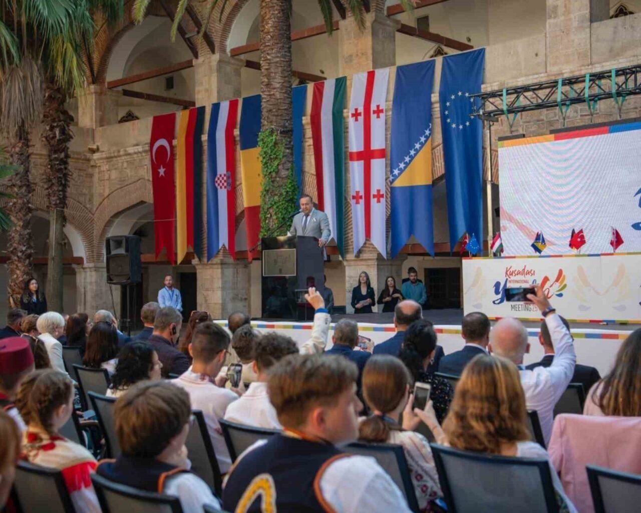 Kuşadası Belediyesi tarafından düzenlenen ‘Kuşadası Uluslararası Kardeş Şehirler Gençlik Toplantısı’ final günüyle sona erdi. Tarihi Kervansaray’da gerçekleştirilen etkinlikte 8 farklı ülkeden gelen öğrenciler yöresel danslarını sergilerken belediye başkanları da imzaladıkları ‘Barış ve Kültür’ deklarasyonuyla dünyaya önemli bir mesaj verdi.