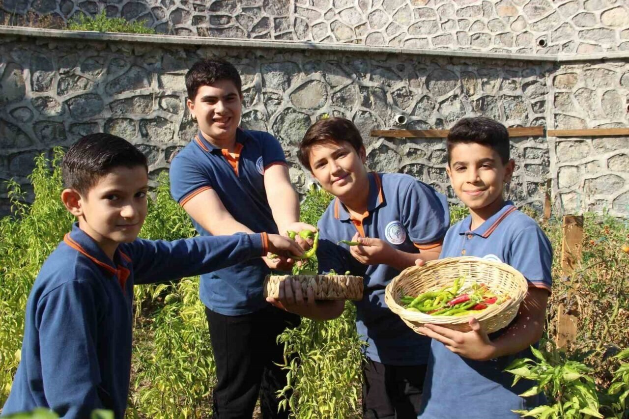 Bahçedeki çalışmaların derslerine de olumlu yansıdığını söyleyen öğrencilerden Yaman Efe, “Bahçemizde biberler yetiştirdik ve bunları turşu yapıyoruz. Satarak yeni bahçemizi kuracağız. Başladığımızda çok küçüktü, yani fidanları biz diktik. Buradaki sebzelerin hepsini biz diktik. Şimdi kocaman oldular. Bunlarla turşular yaptık, sattık ve gelir elde ettik. Okulumuza yardımda bulunduk” dedi.