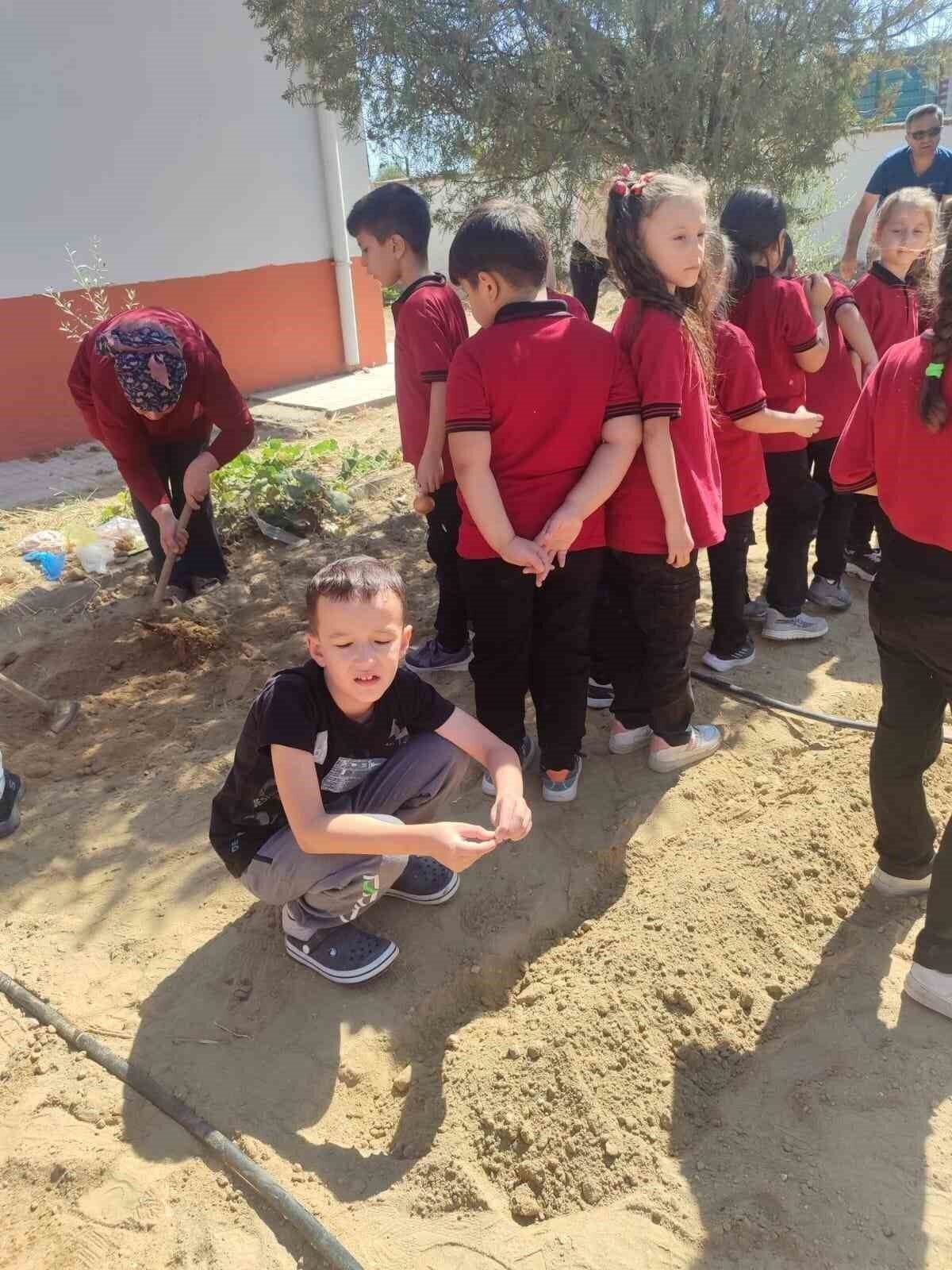 Cumhurbaşkanlığı tarafından 2025 yılının “Aile Yılı” ilan edilmesi ve Türkiye Yüzyılı Maarif Modeli doğrultusunda düzenlenen etkinlikte, zeytin fidanı dikilirken, ıspanak, tere, roka ve maydanoz gibi kışlık sebzeler de ekildi.