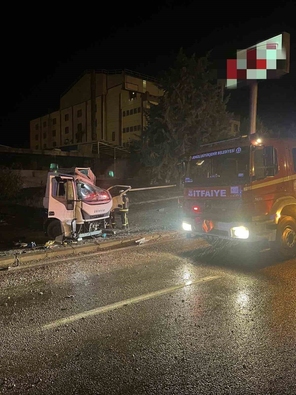 Denizli’de yağış nedeniyle kontrolü kaybeden kamyonet yoldan çıktı. Sürücüsü ağır yaralandı.